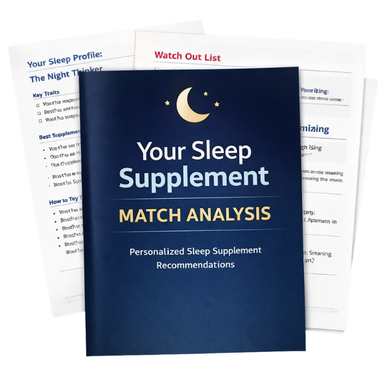 Get a personalized Sleep Supplement Match Analysis and learn the exact supplements that match your unique profile ... and which ones might actually be making your sleep worse.  Receive your customized report in less than 10 minutes and finally put an end to sleep supplement trial-and-error.